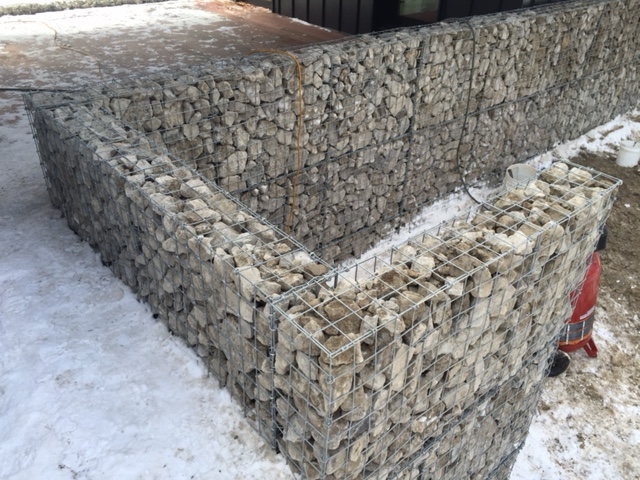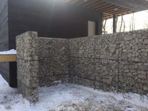 Check out these Gabion Veneer Walls! I’m guessing the majority of you have never seen this before but I think it will be popular around here soon. Proud of all the many hours the guys have into this job so far. When completed they will have placed over 50 yards of rock one at a time. Thanks to the team at ClearBrook for all their hard work![clear]